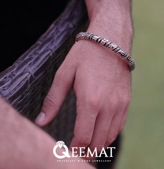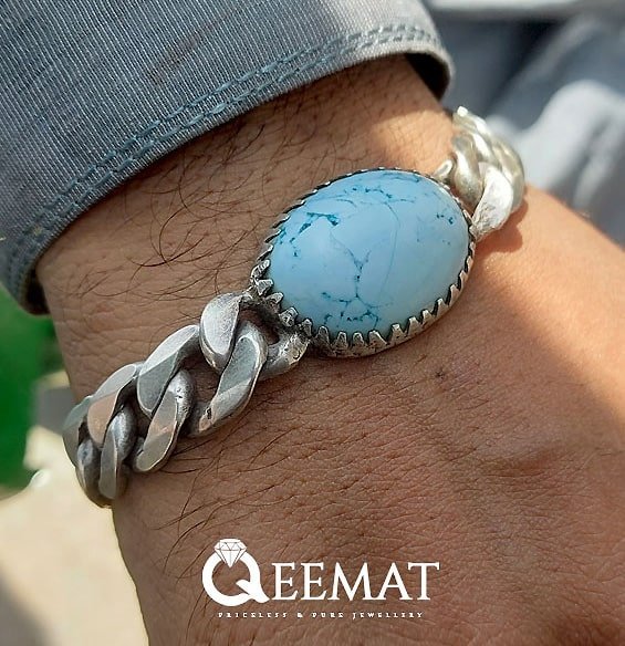 Discover our collection of handmade 925 sterling silver bracelets for men. Men have varied choices according to the occasions or religious affiliations. Muslim Shia men like to wear simple or twisted silver bar bracelet. They sometimes prefer to fix turquoise or agate gemstones at the corners of these bracelets commonly known as Kada.
