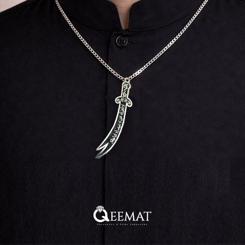 Sword Locket with Arabic Calligraphy – Hazrat Ali A.S Silver Locket
