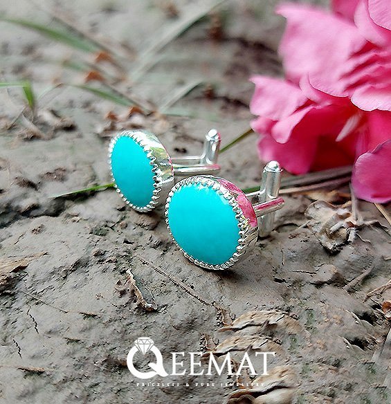 Handcrafted 925 Silver Metal Turquoise Stone Cufflinks for Men’s