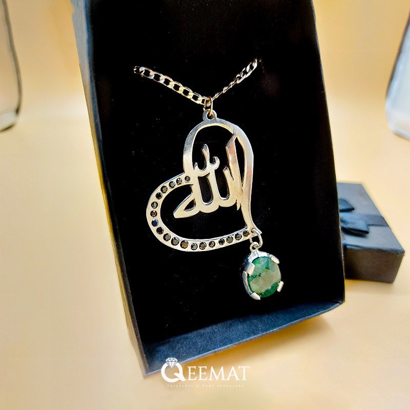 Two designs of Allah’s names are fixed in a heart shape pendant