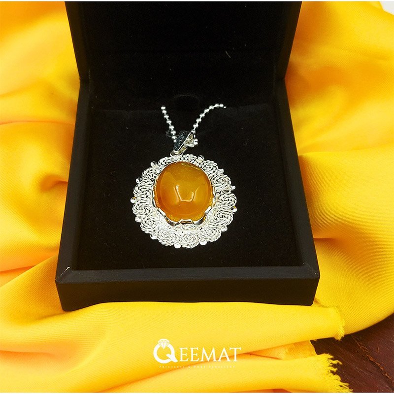 Yellow agate is in cabochon shape and looks attractive in this necklace