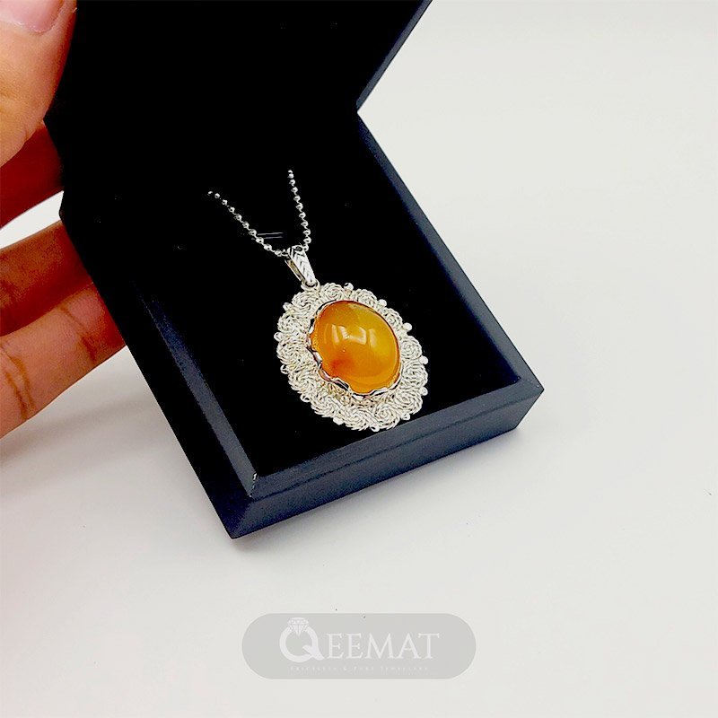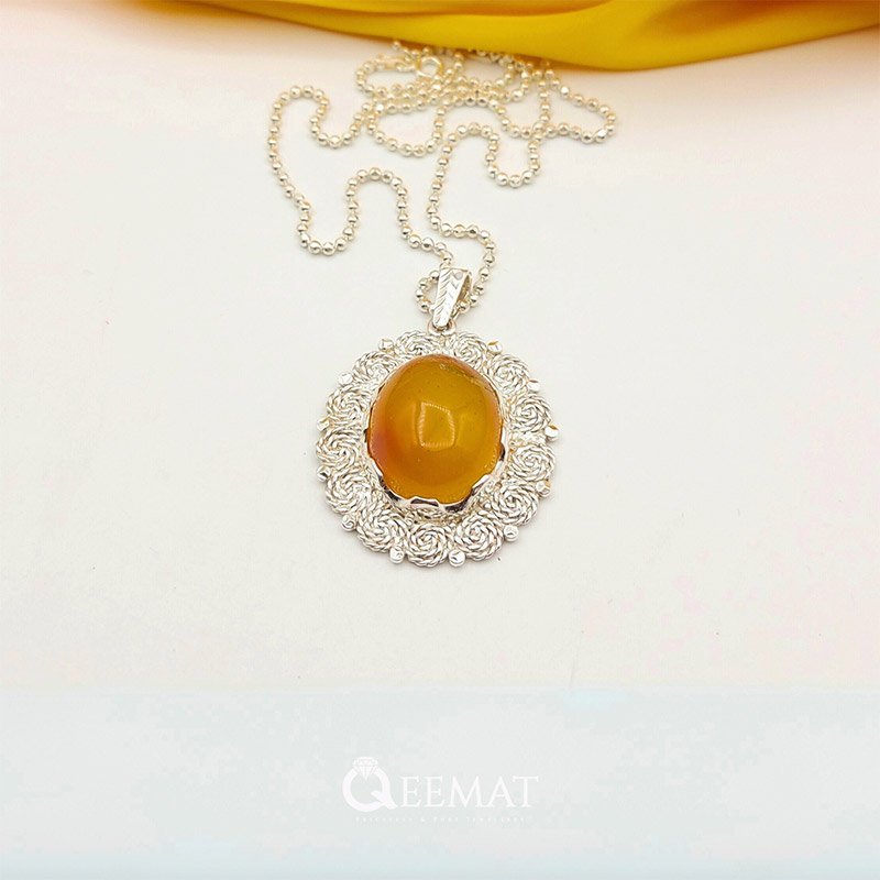 Handmade “Chabbi” design is carved out of 925 Sterling Silver and Zard Agate