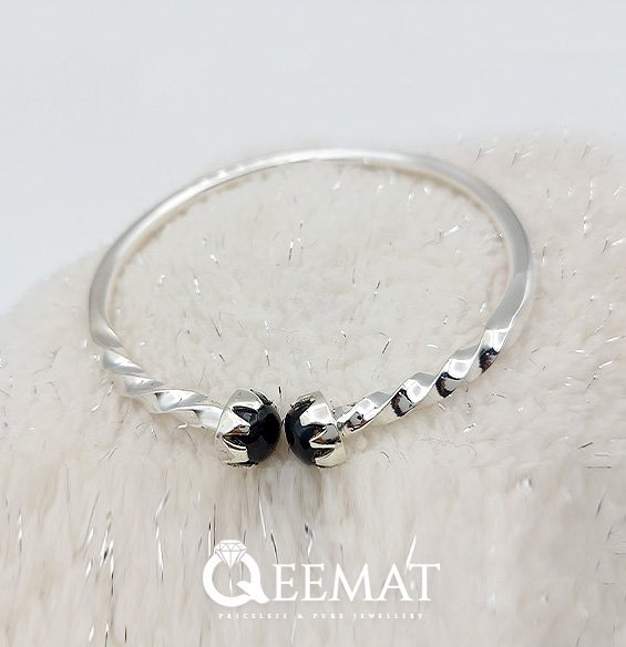Buy A Black Agate Bracelet Kada Made of Pure 925 Sterling Silver