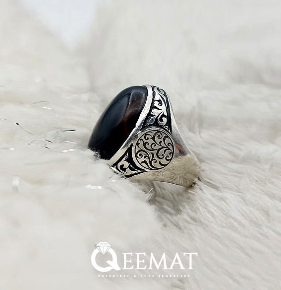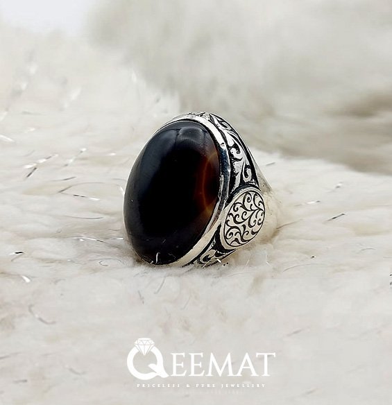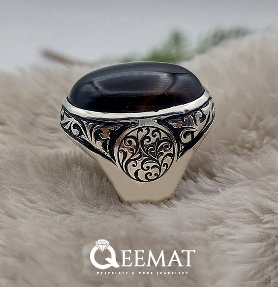An Opaque Black Agate Stone Make A Men’s Silver Ring A Gem
