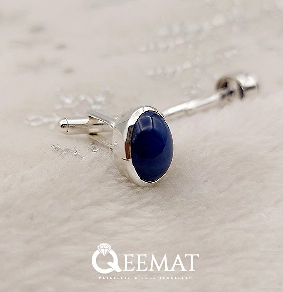 The dancing star-like natural phenomenon on these two sapphire cufflinks captivates everyone’s eye. There is a thick wall of sterling silver around these oval shaped natural stones with a 1/4th degree of bevel. The light not only reflects from the edges of the stone but also from these beveled walls, creating an eye-catching combination. We have polished these navy blue cufflinks so superbly that it creates a mirror-like effect as well. Buy a pair of customized cufflinks from us, either in gold plated silver metal or naturally silver color.