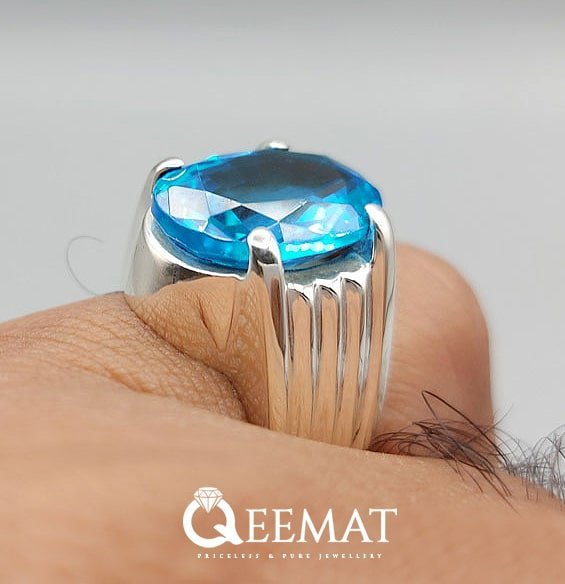 Fitted with genuine and natural Blue Topaz known as Pukhraj in Asia