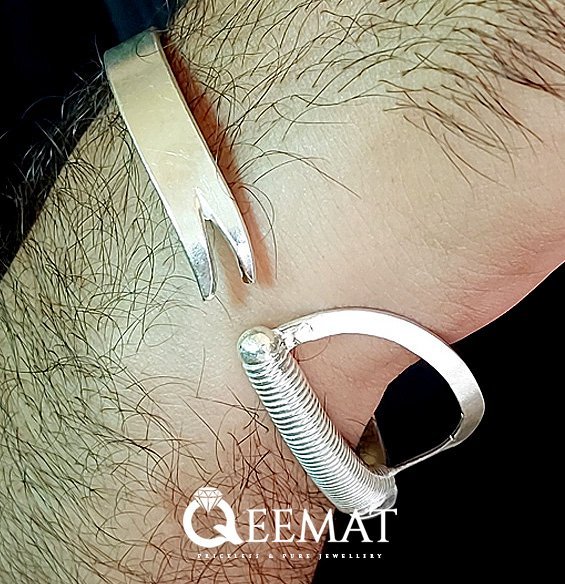The manufacturing of these beautiful sword-shaped bracelets can be seen in the picture as well. The hard work of the expert jewelers is in front of you and you will not miss the quality of the design and silver provided in this ornament.