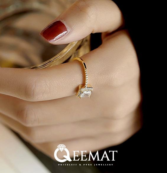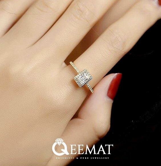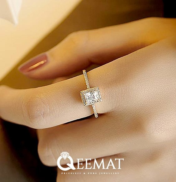 A dazzling emerald cut moissanite shines at the center,Set in silver with brilliance that’s hard to ignore.