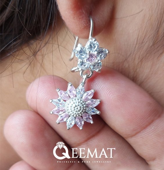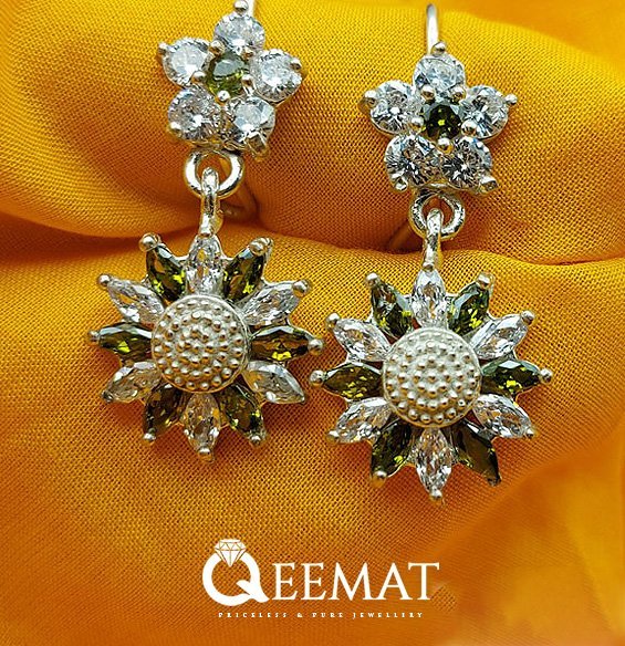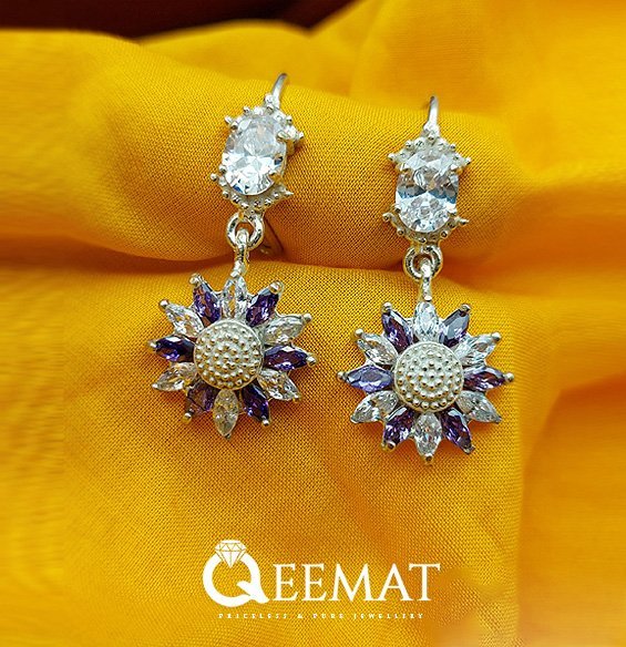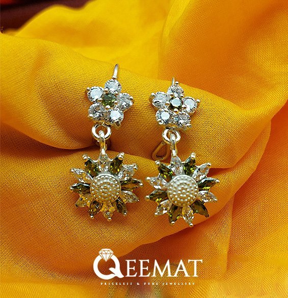 This earring is made of real gemstones, and the same design can also be ordered online in pure gold instead of the pure silver frame. Qeemat.com provides you with the latest and trendiest earrings of 2025 at low prices compared to other platforms.