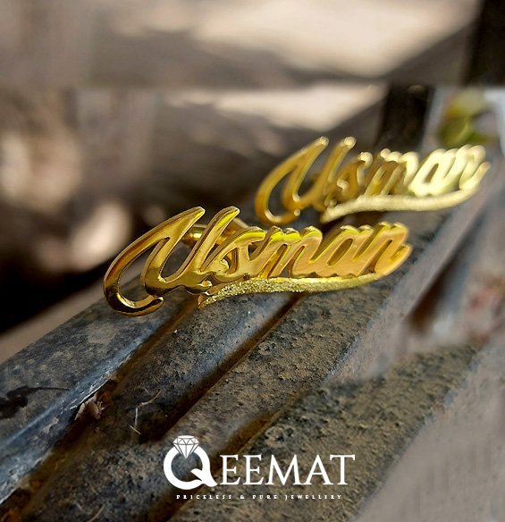Custom Name Pure Silver Made Studs in Gold Plated For Men's