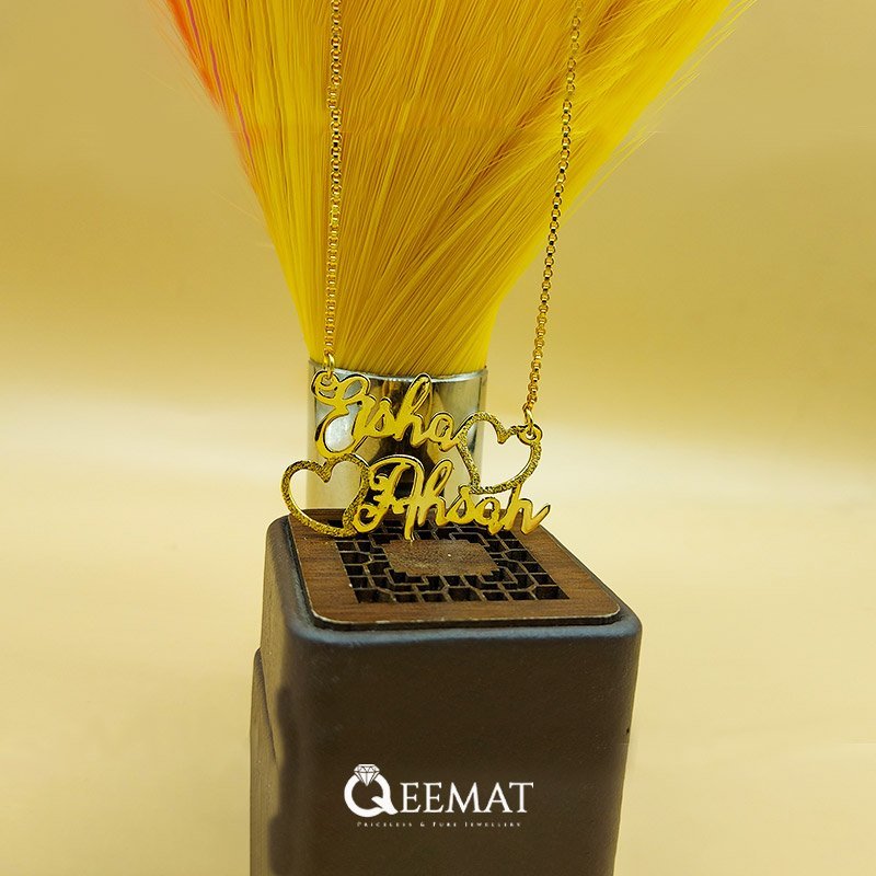 The magnificent name locket for couples is custom designed and manufactured by Qeemat.com designers and artisans. You can order a custom locket with your name to gift your husband, wife, fiancé etc. This custom name couple locket can be ordered in two different metals, namely artificial made of copper or pure silver. The heart shape used in this design can be changed and you can plan an altogether new design which can be prepared for you by our team of designers and artisans.
