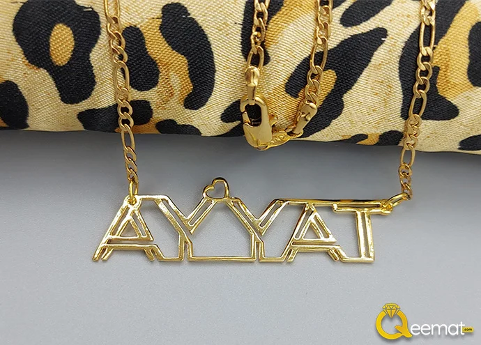 At qeemat.com, order a pendant of your custom name in “Ayyat” style with 24K gold plating or pure silver. We can design your name in new and stylish fonts and enhance your beauty as you will wear it in any festival or party. Pendants such as these are beautifully designed and filled with a glamorous shine. Together with that you can magnify its value by ordering it in 24k pure silver.