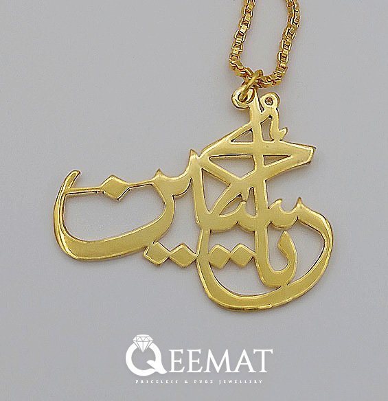 This beautiful Ya Hussein Gold Plated pendant is designed in Arabic Calligraphy. The majority of Muslim countries promote Islamic jewelry and items that allow people to connect themselves to religious teachings. In Turkey, there are abundant products designed to boost the industrial focus on faithful and devoted relationships with religion. The Arabic calligraphy for jewelry and jewelry designs on our website is unique. Our products are of the highest quality in the world, and we can create them for you in little time.