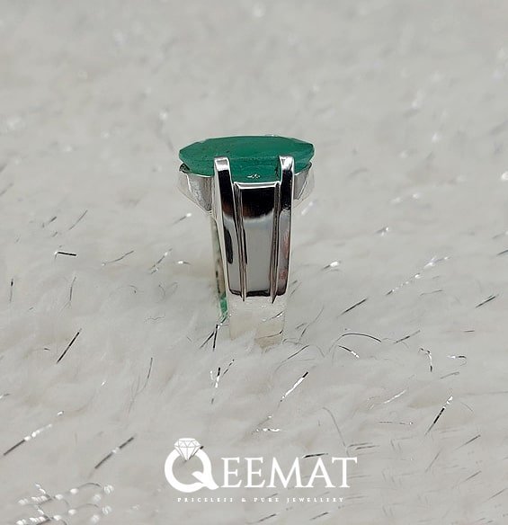 In todays’ world, emerald lovers fancy for natural gemstones and men especially like to wear emerald rings. The ring shown here is made of pure silver according to international standards. The shank of this ring has gorgeous looking shine and it is plain with two ridges at the corners of the shank. These ridges end up before the start of hallmark. The benefits of wearing an Emerald or Zamurd ring are equally beneficial for the men and women. Emerald is the stone of friendship and love and it is a sign of prestige and pride.