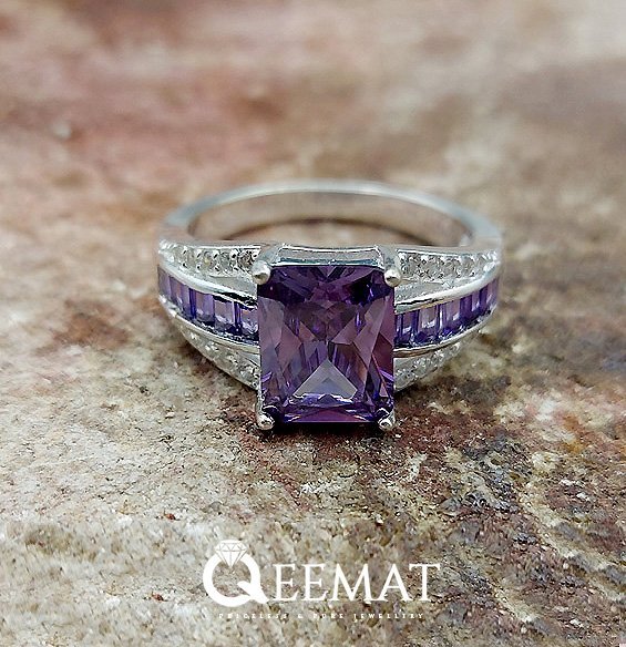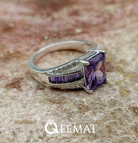 Handmade Purple Zircon Stone Silver Ring for Ladies – 925 Silver