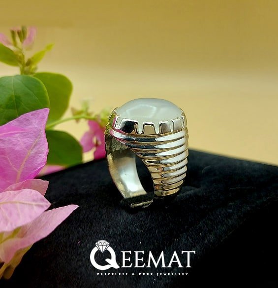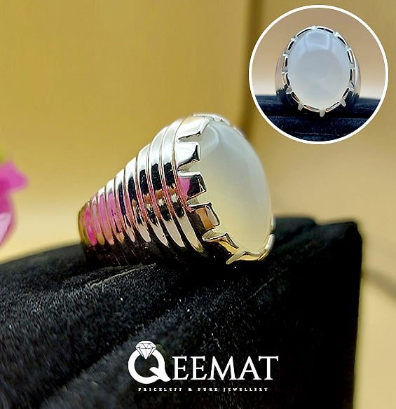 Stone lovers are fond of Dur e Najaf, which is one of the most beautiful stones. The real Quartz (Dure e Najaf) Stone is fixed in this genuine pure Silver Ring. Qeemat.com offers many different styles and designs for rings, bracelets, necklaces, and earrings as well.