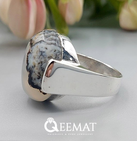 The landscape patterns visible in this moss agate turns this ring into a truly beautiful vintage style jewelry item. Men often opt to wear simple rings that are paired with premium moss agate brining health benefits for them. The cabochon shape stone featured in this ring has a substantial height that guarantees good visibility and appeal. The stone is fitted with 2 broad metal claws called prongs, ensuring the stone is being held firmly.