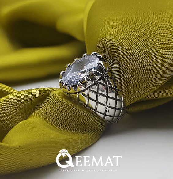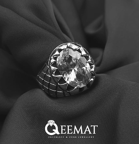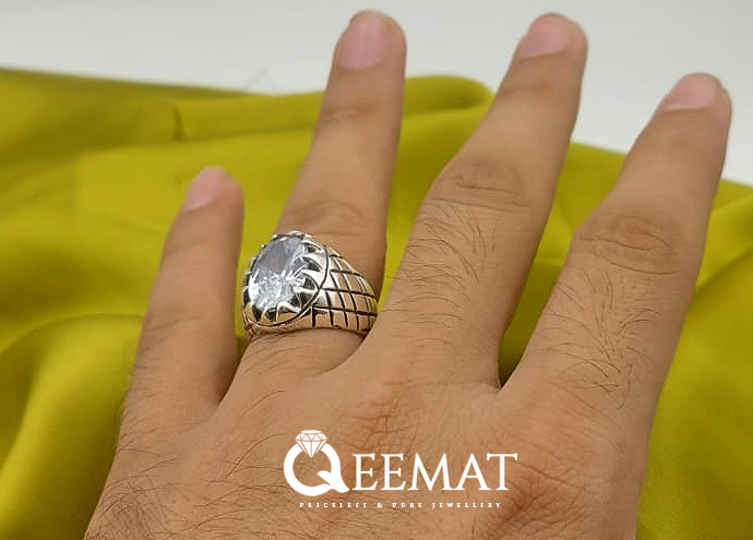 Small pointed prongs are handcrafted to hold a beautiful white topaz gemstone in this ring. Under the engraved circle of the head area, there are rhombus like attractive shapes on the shoulders of this silver ring. All these small elements are meticulously crafted to create a well balanced beautiful ring. We recommend to buy this ring with selected stone size of your choice, if you like big or small stone, you can order this ring accordingly after selecting your ring size from the dropdown.