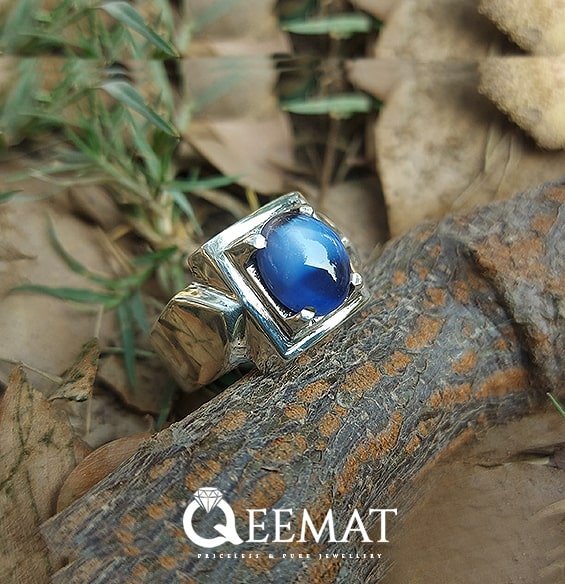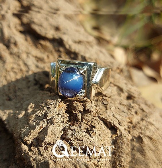Beautifully crafted by hand, this 925 sterling silver ring is fitted with blue star sapphire stone. This gemstone exhibits a star-like phenomenon when light enters the stone and reflects off. This increases the beauty and vibrancy of this stone creating an appearance of a shining star. It has square head shape and simple shining shank area.
