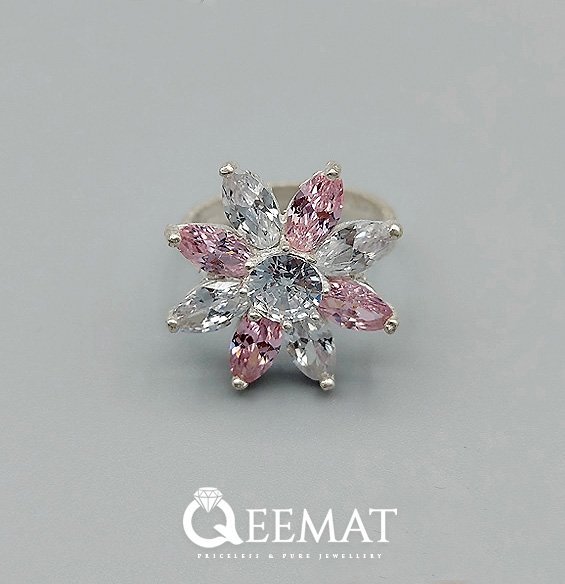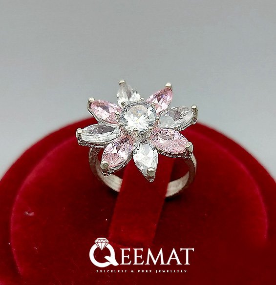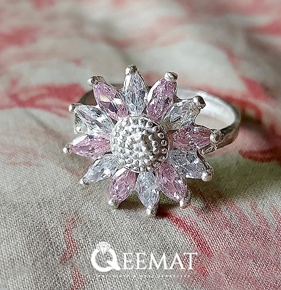 • Party Wear 925 Sterling Silver Ring For Girls – Petal Zircon Stones