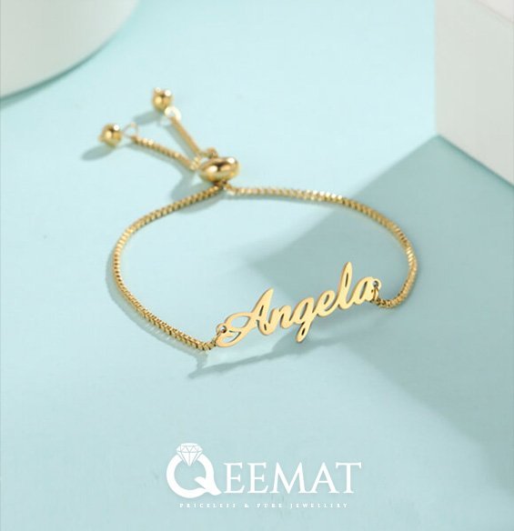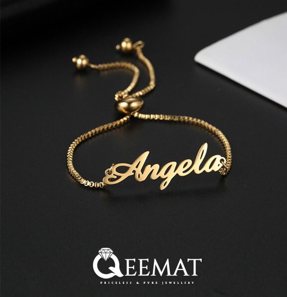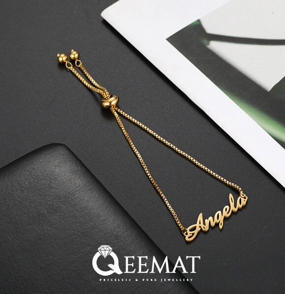 The purpose of buying a name bracelet helps you express your sentiments of love or affection. To adjust the heart shapes, first name is cut with a fine coping saw blade in a beautiful font. Then heart shapes are attached and an adjustable chain bracelet of fine quality is attached with it. Buy this single name silver bracelet with heart shape for kids, boys, girls or adults.