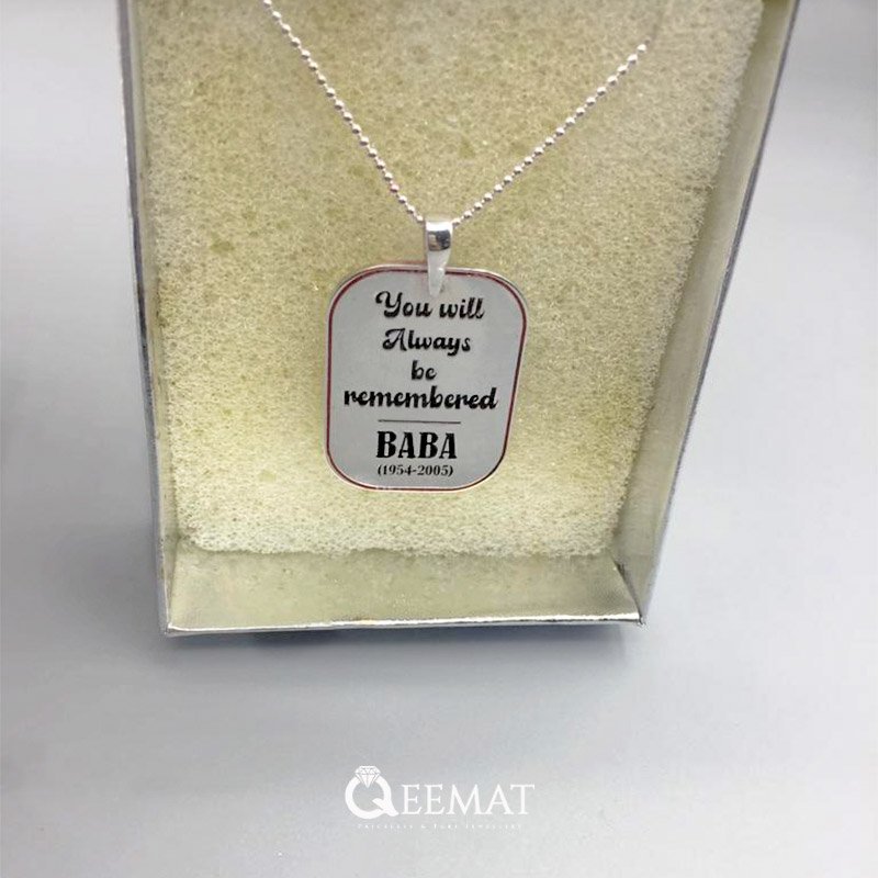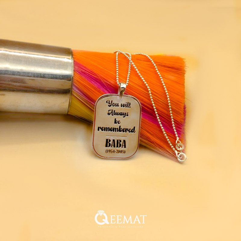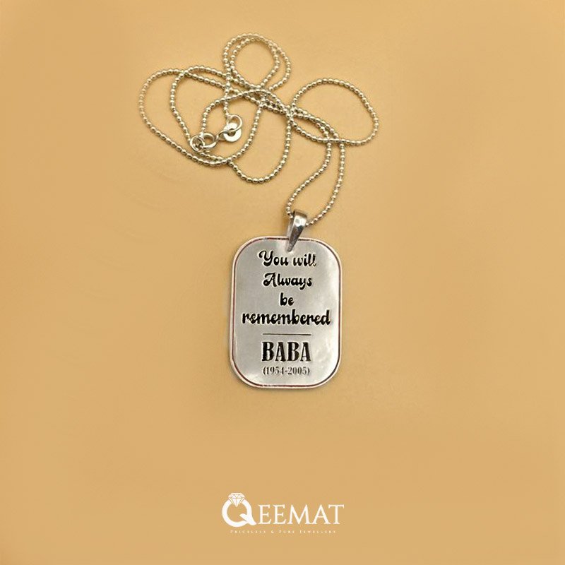 Do you know the taste of your loved one to whom you like to gift a quote necklace? If yes you can chose a shape, a quote and a chain design here on qeemat.com to make someone happy. Let them know about your precious feelings with a small piece of writing engraved on a plate of pure Silver.