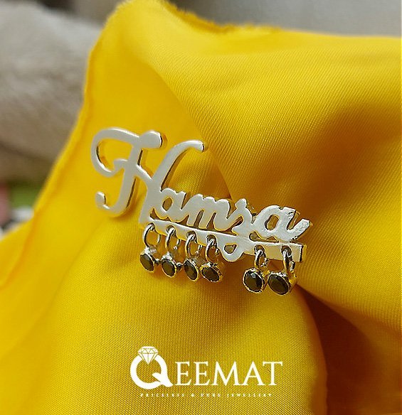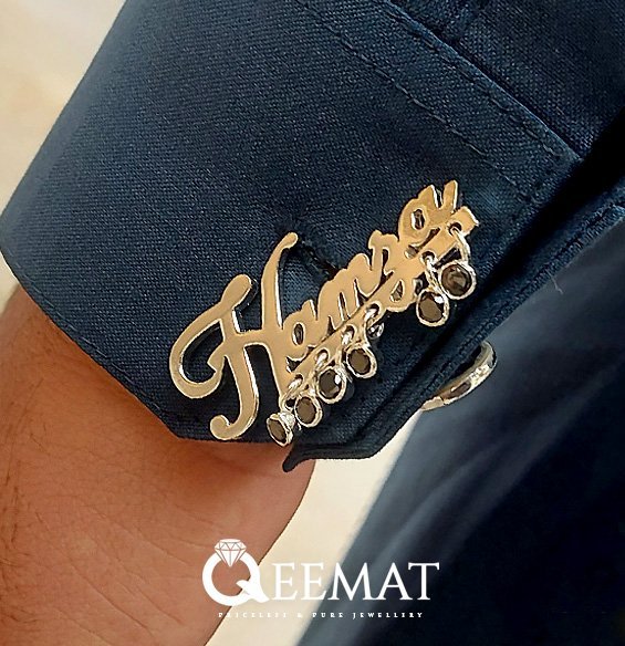 The promising aspects of this pair of name cufflinks are its custom cutting by hand and usage of premium metal of sterling silver. The dangling cupped stones of black color, doubles its shining and attraction. We can make and customize a pair of cufflinks with the same font style and stone settings only for you as well. If you like the stones in other colors, or gold coating of silver, you can mention this in the order description.