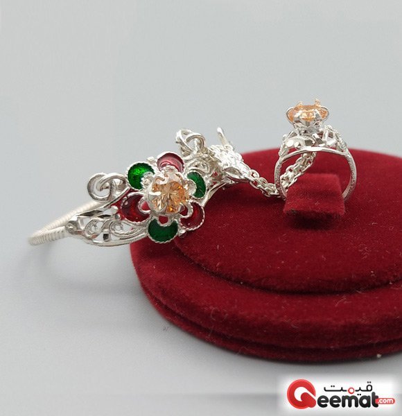 Orange color zircon stone is used as the centerpiece in ring and bracelet