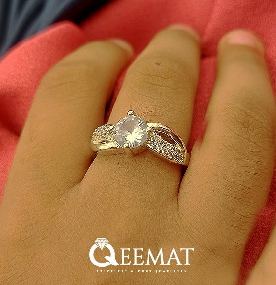 For budget savvy people who like to spend their money wisely on engagement events, moissanite stone rings are a perfect pick. Our designers have created this ring with split shank design, bosting the center stone of moissanite in 4 prongs. 5 smaller cubic zirconia stones are also fixed on each sides of the cathedral cum shank area. Even it is being offered in surprisingly low price, it will not devalue the significance of your event.