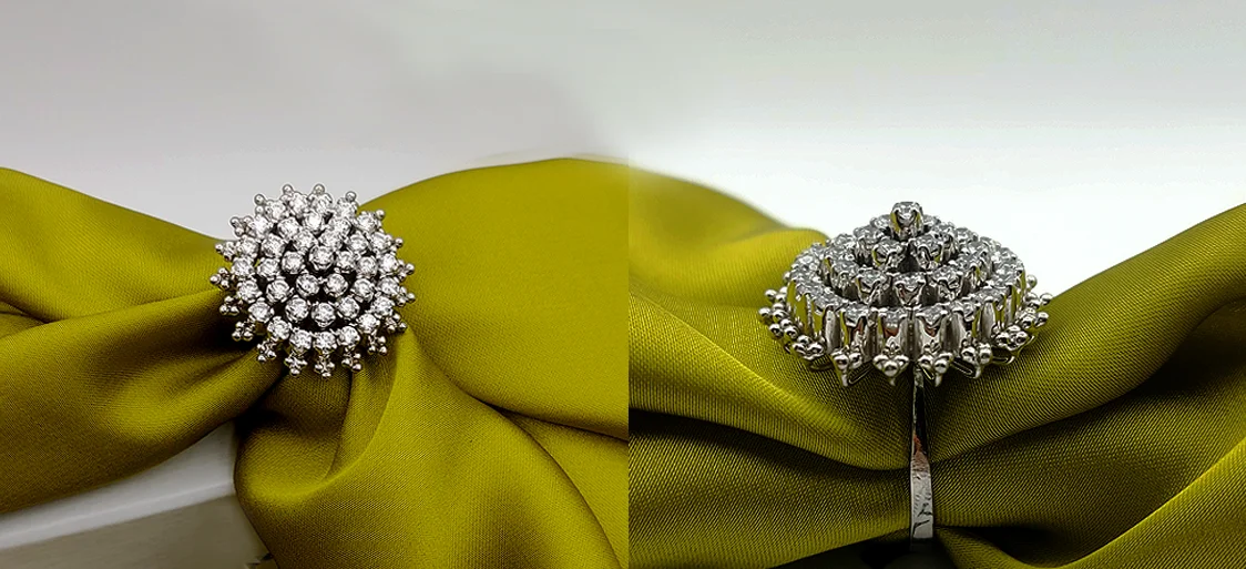 A cluster ring of cubic zirconia stones is always loved because of its lustrous brilliance and stone setting. In this cluster design of the ring, the stones are intricately arranged in 4 steps. These four tiers cubic zirconia stones are fitted in tubular shaped cups, giving a unique look. Our team recommends it as a brilliant gift for women to be presented on engagement, wedding or anniversary ceremonies.