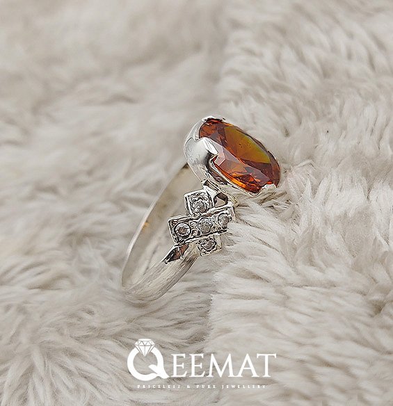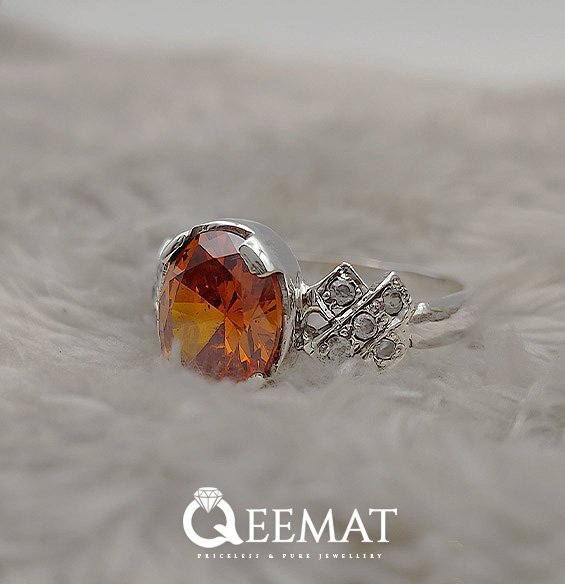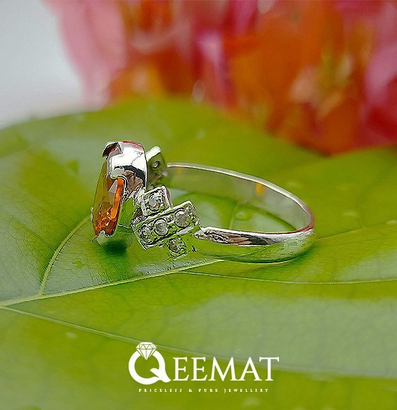 Buy An Orange Color Stone Ring for The Girls Of Four Pronged Design